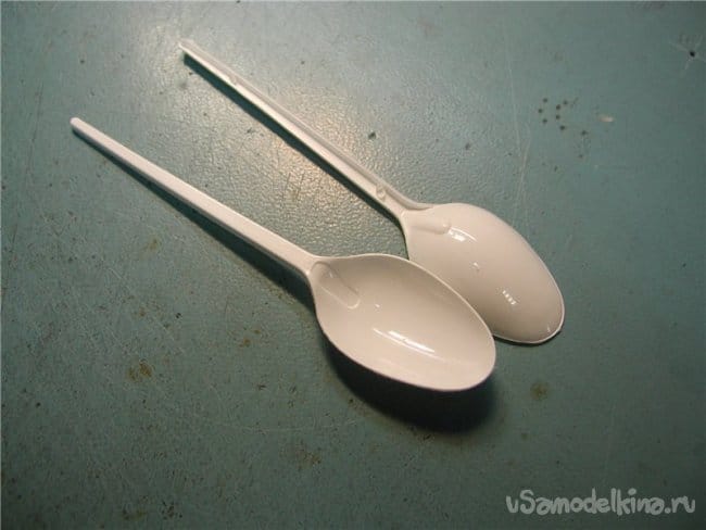 Изготовление стоек и обтекателей шасси из одноразовых ложек.