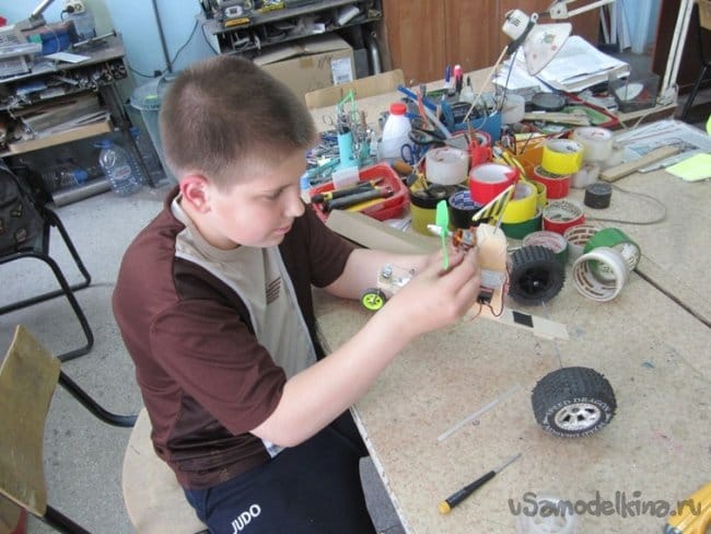 В качестве рулевой машинки установили сервопривод с усилием 2 кг.