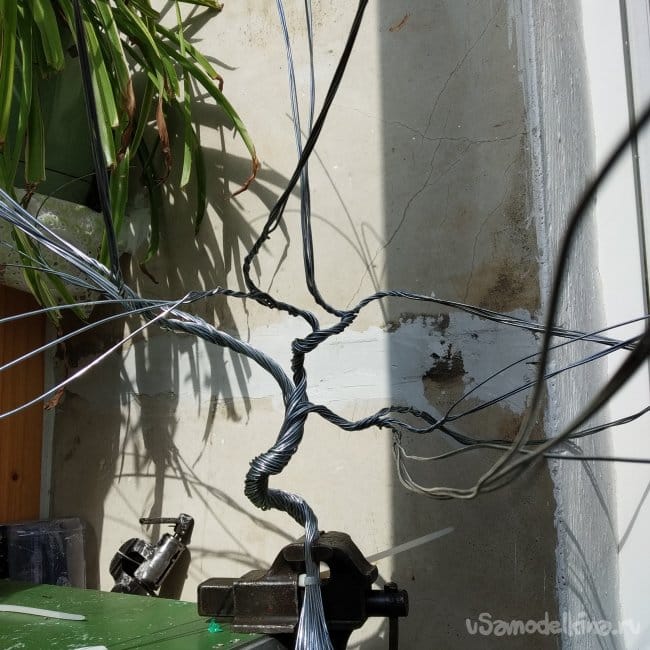 А теперь начинается геморрой. А именно, получилось примерно 46 жил, которые надо скручивать в вышеописанные завитки, но при этом, чтоб красиво было. У меня на это ушло несколько часов, если считать без перерывов. С перерывами это заняло почти весь день.