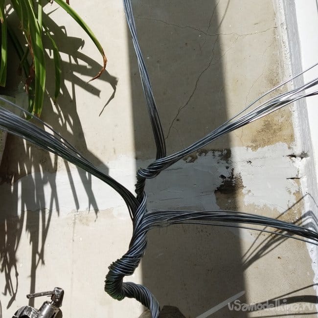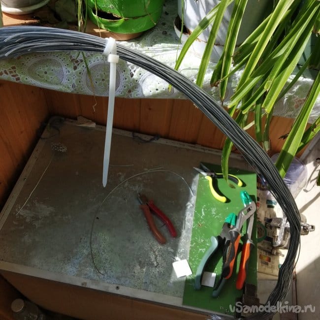 Обязательно нужно всё фиксировать стяжками, иначе проволока может взорваться. (Я когда снял стяжки с общего мотка, мне проволока в лицо выстрелила).