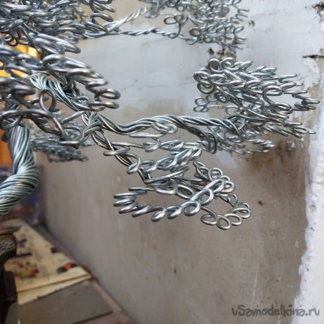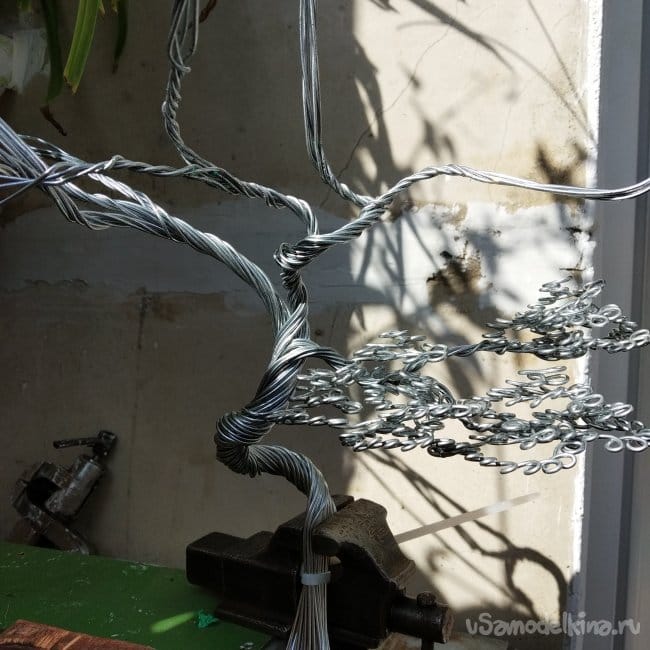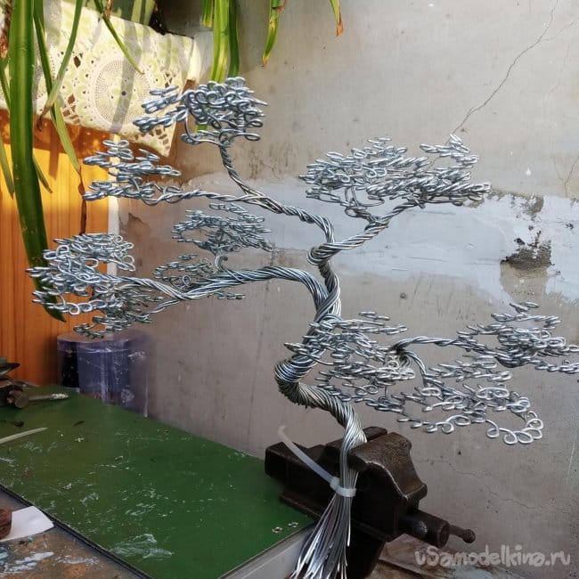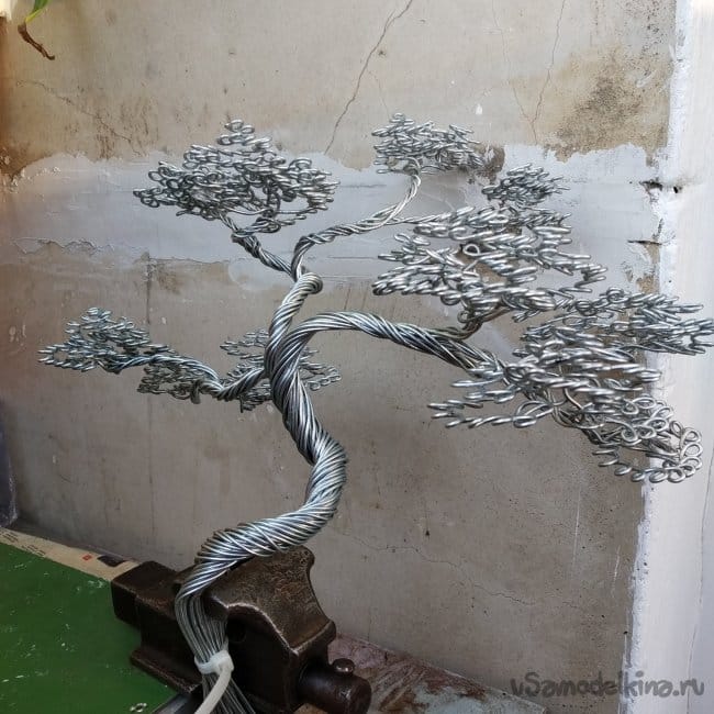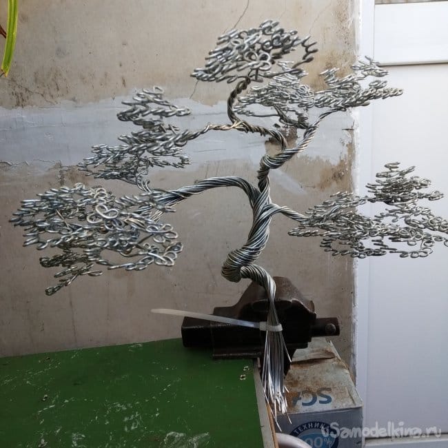 В общем, вот. Было трудно, отлетела ручка длинногубцев (благо удалось приклеить), чуть не отлетели мои ручки, так как поначалу кажется, что быстренько это всё накрутить можно, но под конец руки все в мозолях и дрожат, но получилось. Не идеально, конечно, в некоторых местах криво, да ещё и не угадал с толщиной проволоки, нужно было взять тоньше, но по сравнению с прошлым исполнением чувствуется прогресс. Дальнейшая судьба бонсая ещё не определена, но, возможно, он появится в следующей самоделке. Скорее всего, я выпущу вторую часть, где буду делать подставку. Но это не точно.