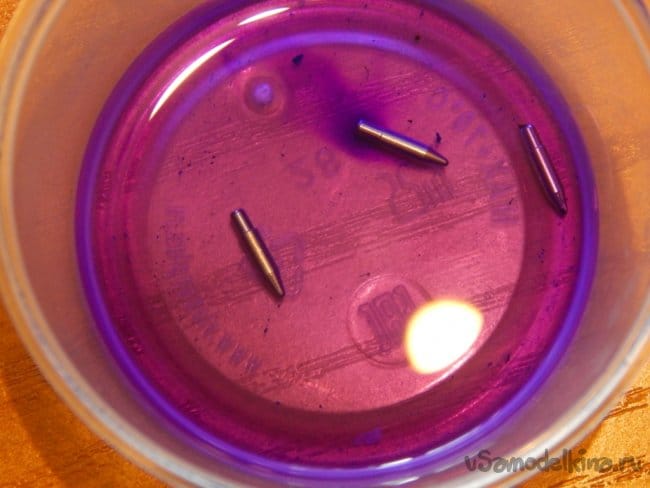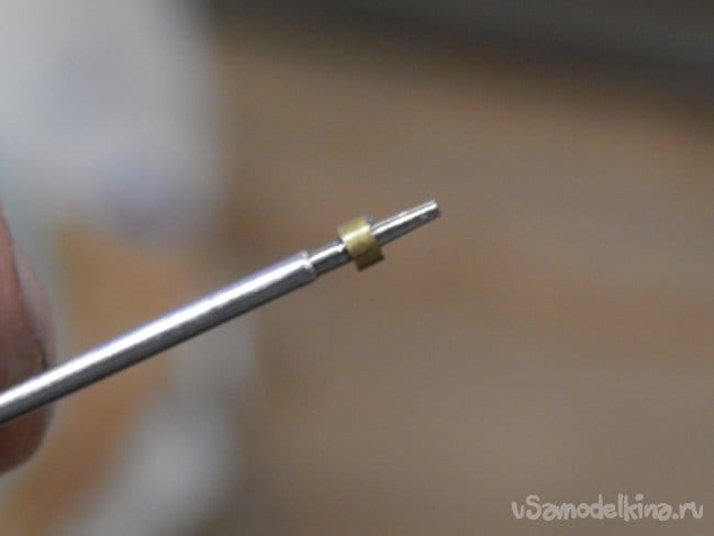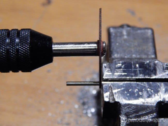 Теперь займёмся осями. Укорачивать до нужного размера их приходится с помощью отрезного круга, установленного в бормашинку, они достаточно хорошо закалены и отпилить ножовкой или простым надфилем не получится.