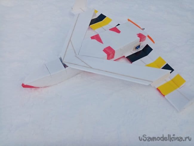 Радиоуправляемая модель полетела практически сразу, немого подвигали ЦТ и поднастроили управление.