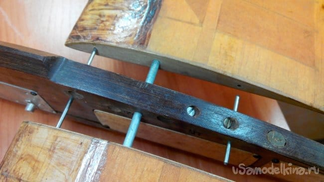 Начал реставрацию с крыльев. Очень аккуратно снял обшивку. Остатки сошкурил специально изготовленным утюжком.