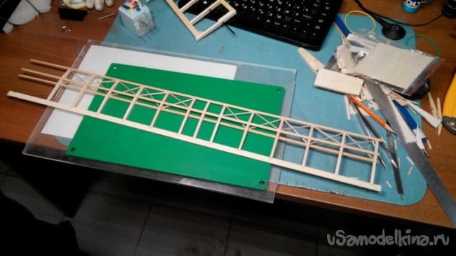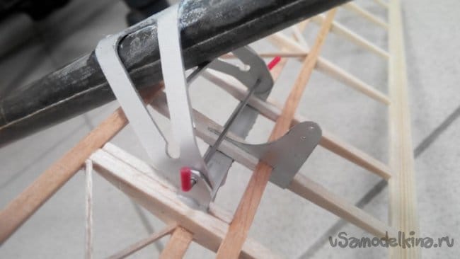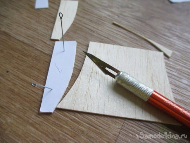 Начинаю с набора нервюр, все такое маленькое. Изготовил шаблон из дюдальки и очень острым скальпелем начал процесс.
