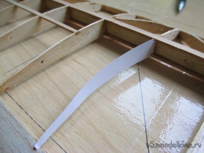 Несколько нервюр все же повредил, приготовил шаблоны из бумаги, подогнал и по ним вырезал выпавшие элементы.