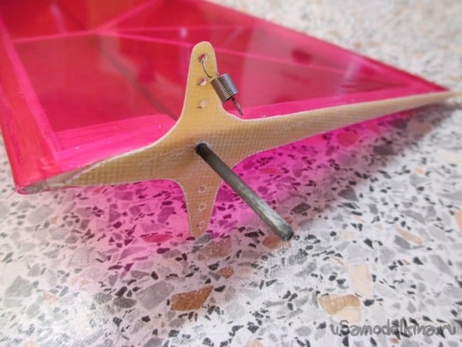 Да... забыл про систему управления. вариант такой же как на планерах класса F1N. От сервоприводов идет рыболовная плетенка в боуденах до рудера, элеватора. Которые имеют возвратные механизмы из пружины и резинки.