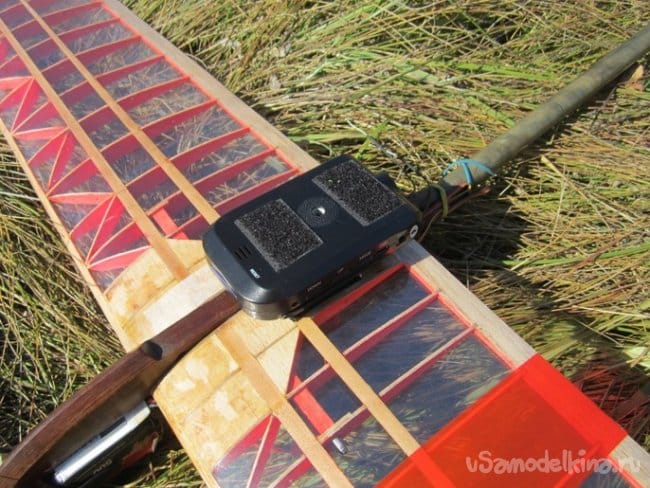 Продолжаю исследовать полет планера. На спину прикрепил видеорегистратор от моей машины на репейник. Понятное дело в центре тяжести.
