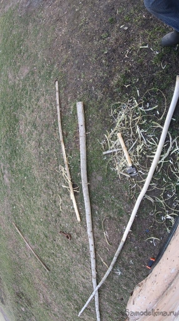 Вырезал нож, вышлифовал скос с одной стороны и попробовал на палке, как он будет работать. В ходе эксперимента примерно понял, под каким углом должен находиться резец.
