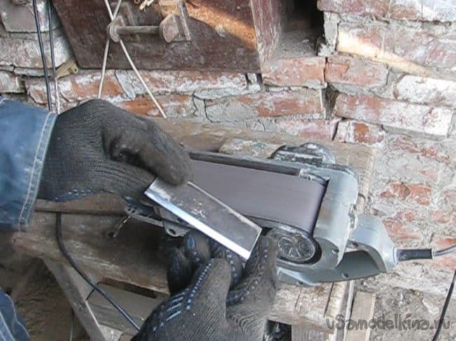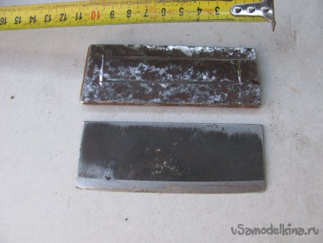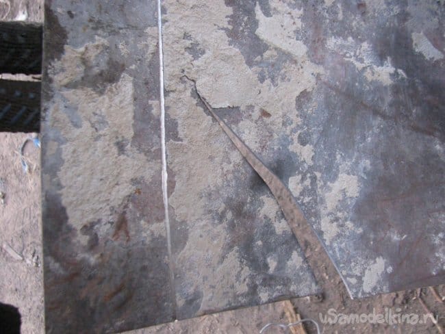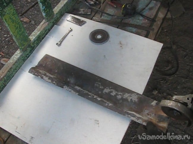 Делаем нож, резец, тут понадобится крепкая сталь. У меня валялся лист стали, который я однажды сломал, пытаясь согнуть, на торце сталь была серой, решил, что она углеродистая. Резалась сталь тяжело, искр было мало, да и шлифовалась очень тяжело, что же это такое, так и не понял, закалке она также не поддается.