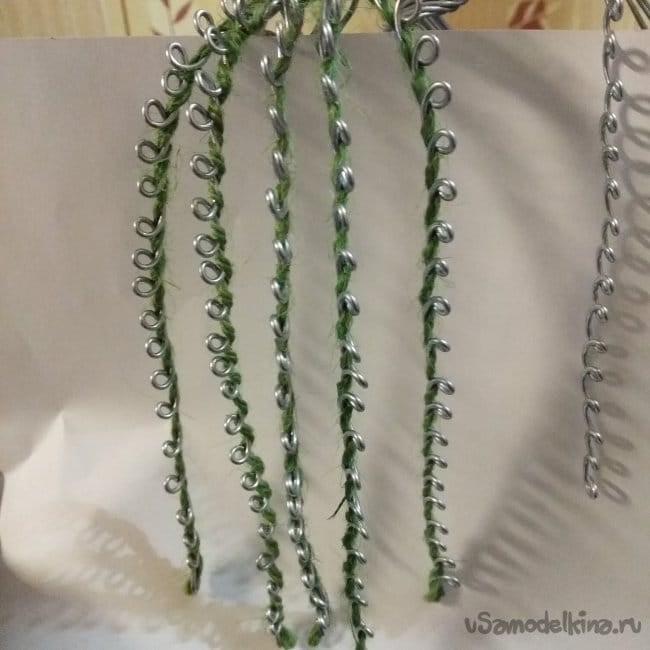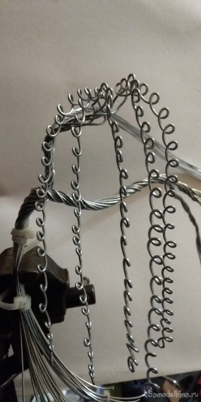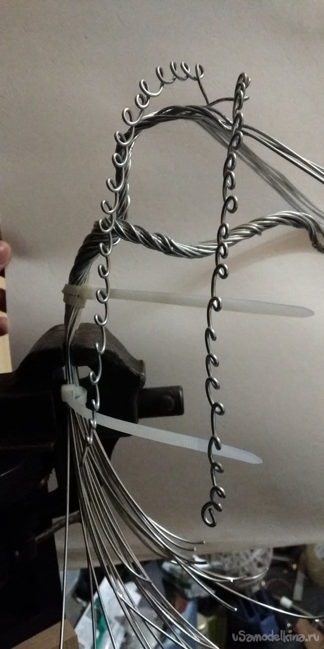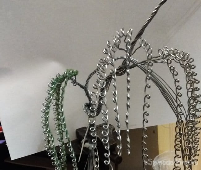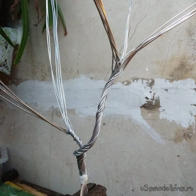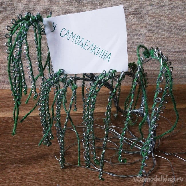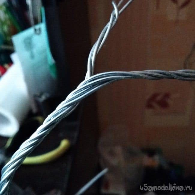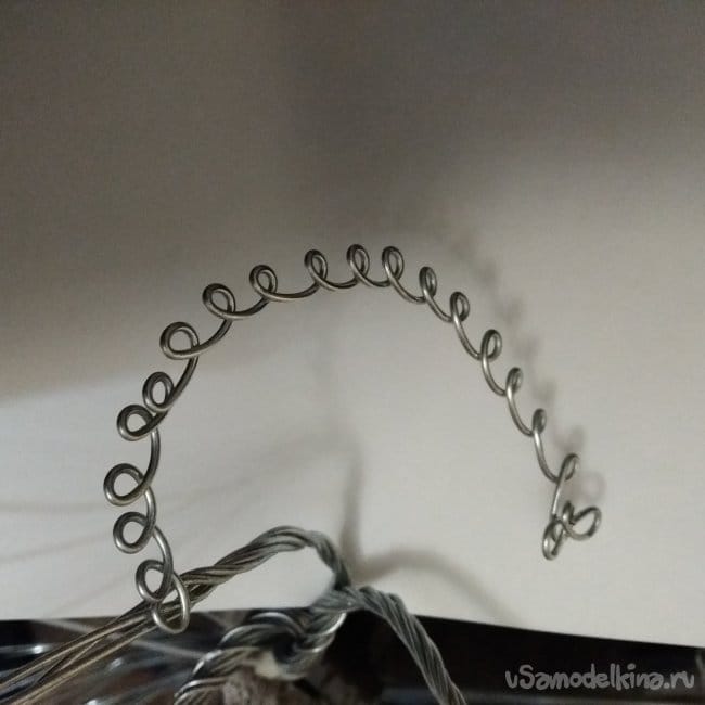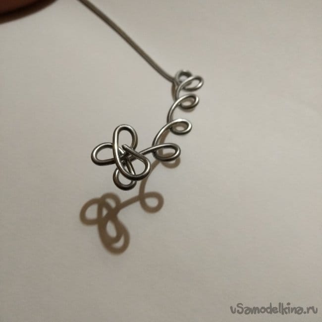 Сделать нужно то же самое, что и с деревом, но в одной плоскости. То есть, скрутить и искривить проволоку.
