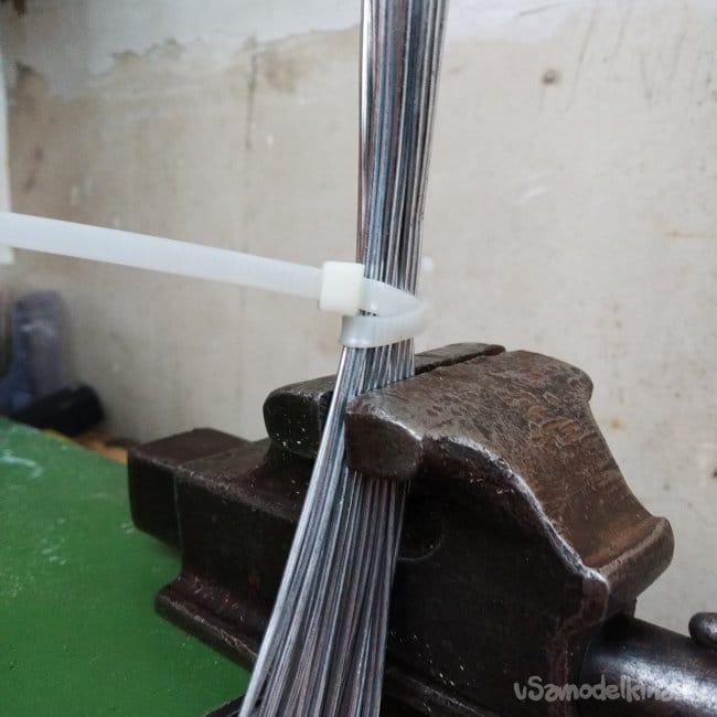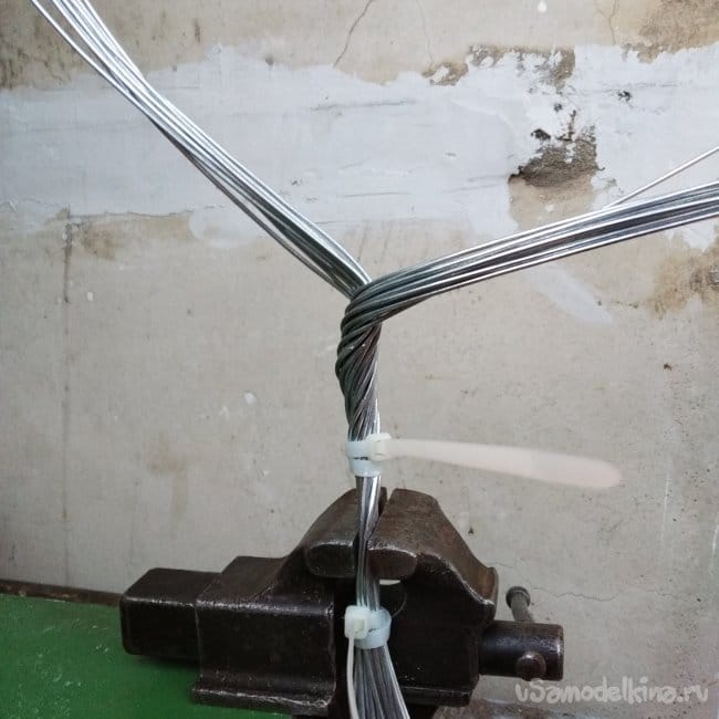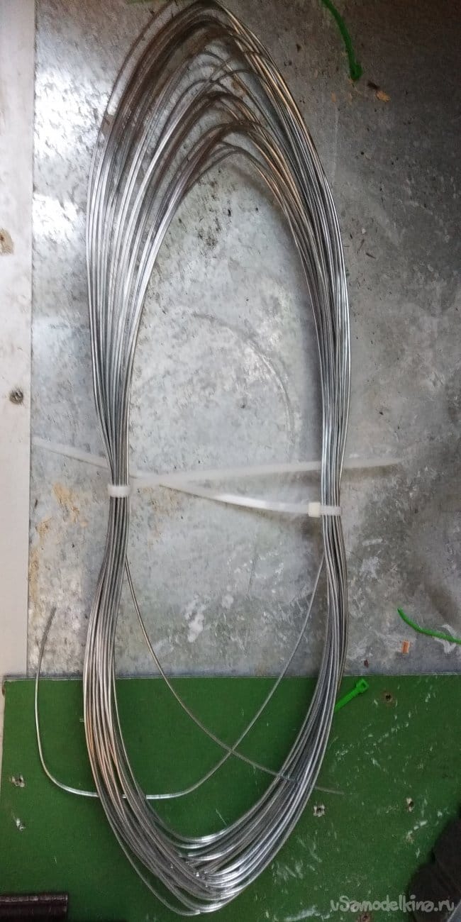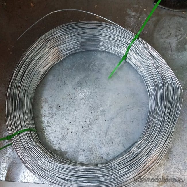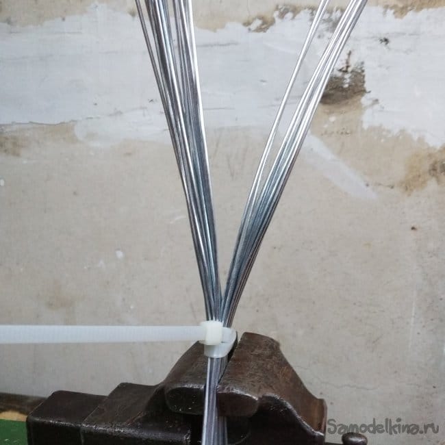 Для начала отмеряем определённое количество мотков проволоки от большого мотка, скрепляем стяжками и сплющиваем.