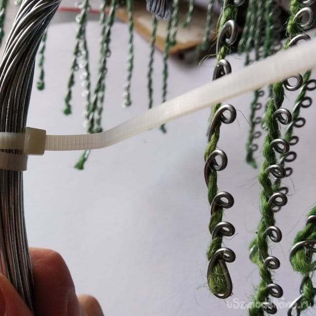 Далее мне пришла в голову мысль: А что если покрасить джут в зелёный цвет и намотать на ветви ивы?