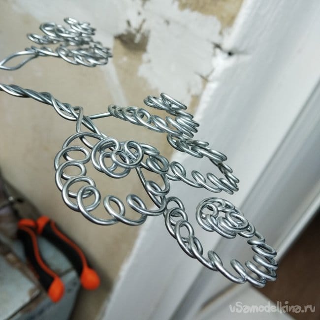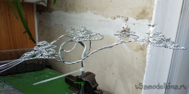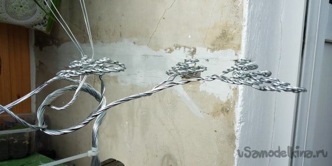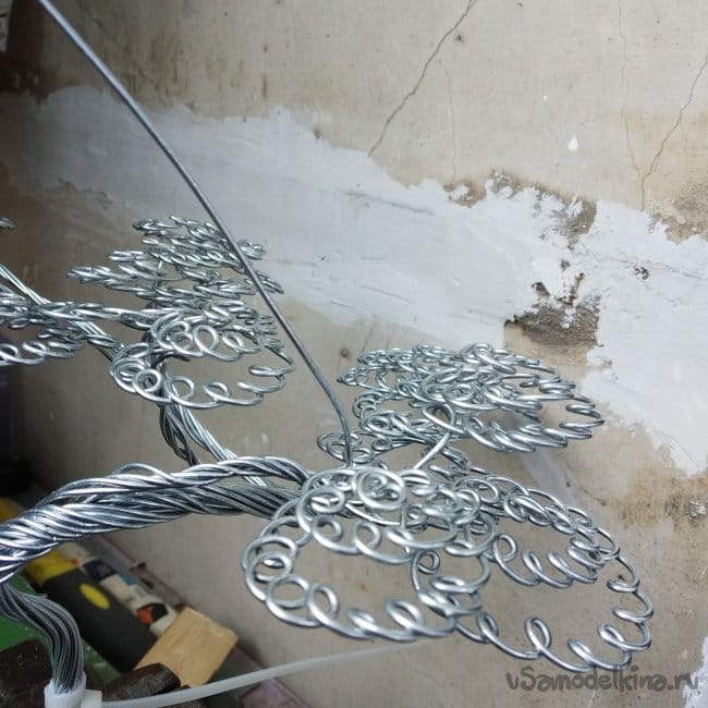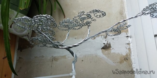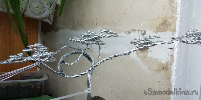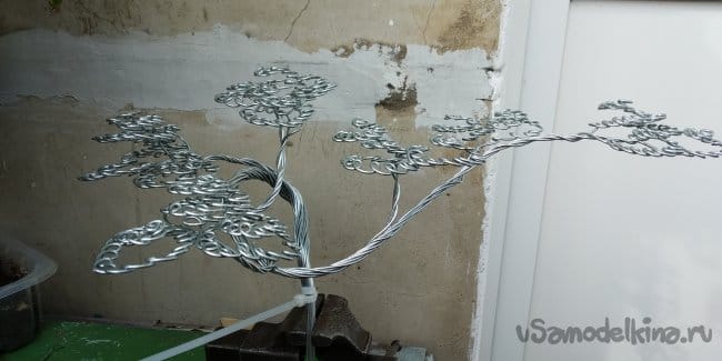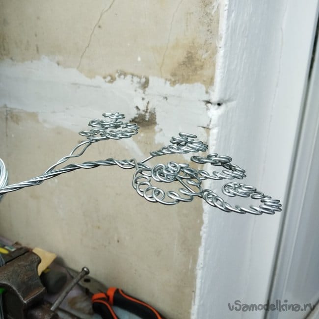 Следующий шаг я забыл заснять, но по фотографии ниже можно понять, что нужно придать основному стеблю более закрученную форму и закрутить до конца основную ветку, вычленяя из неё дополнительные веточки.