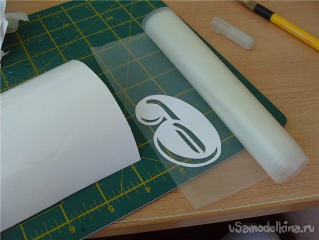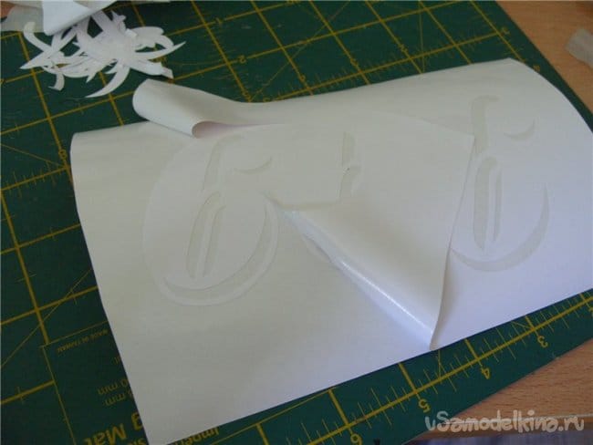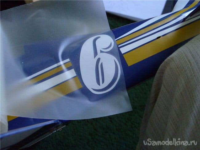 Затем удаляю переносную пленку, но снимаю её как на фото. Главное не подорвать от фюзеляжа тонкие элементы цифры.
