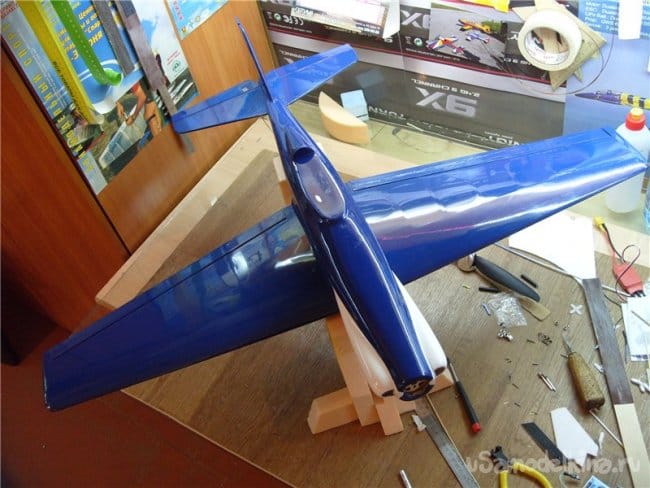 Влажной тряпочкой протираю самолет, наклеиваю конец пленки затем плавно опускаю полоску на поверхность. Протираю опять тряпочкой. Если неудачно , можно аккуратно отклеить и передвинуть кривулинку. Насмерть пленка приклеивается через сутки. Потом её снимать трудно, но можно подогревая феном.