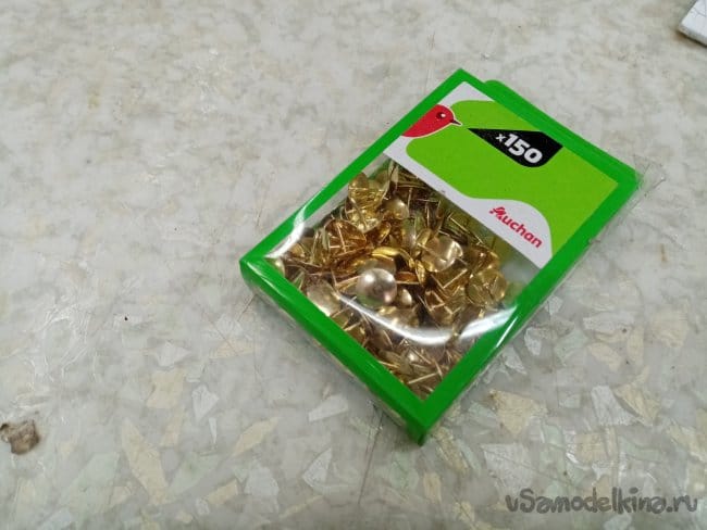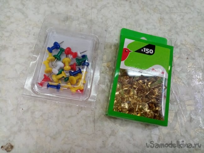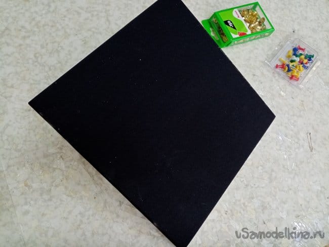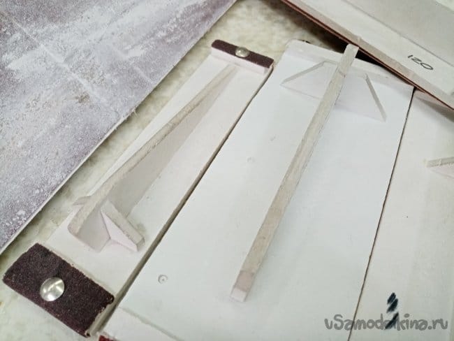 Шкурку на матерчатой основе натягиваю и закрепляю декоративными гвоздиками или офисными булавками.