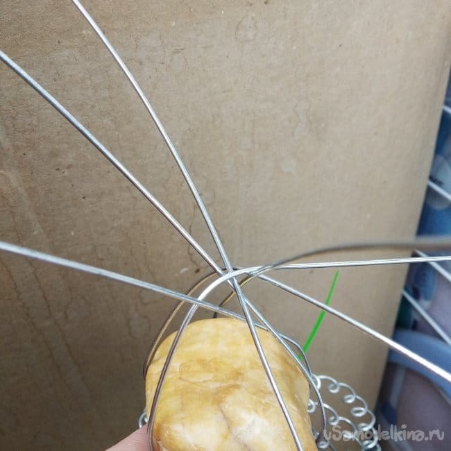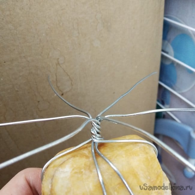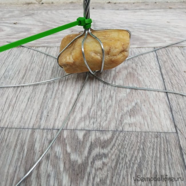 И устанавливаем туда камешек, после чего зажимаем проволокой.