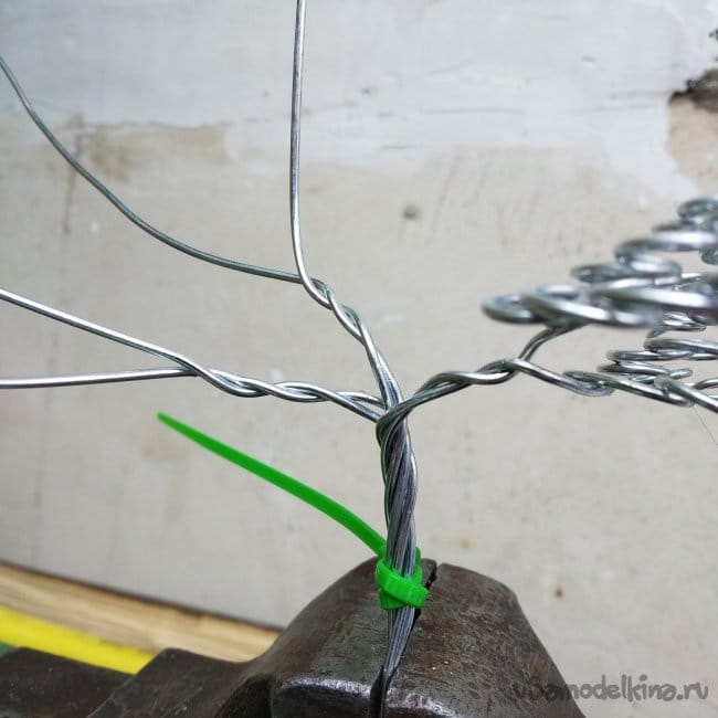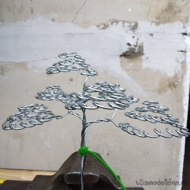 Далее начинаем закручивать проволоку во что-то похожее на хвощ обыкновенный.