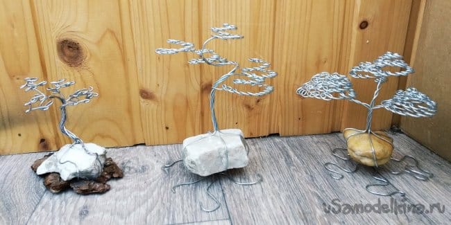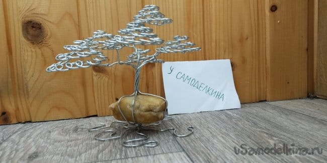 На этом всё. Данный бонсай был довольно лёгок в создании из-за его малых размеров и меньшего количества проволоки, но он по красоте уж точно не уступает другим, более крупным деревьям. Кстати, возможно я буду продавать некоторые свои работы, собственно, почему бы и нет. Возможно, я буду отправлять их даже в другие города, но с этим могут возникнуть трудности, поскольку корни и отдалённые тонкие веточки могут легко погнуться. Но я подумаю над этим. Может, когда-нибудь даже сайт свой создам, где буду всё это дело продавать. Посмотрим, как пойдёт.