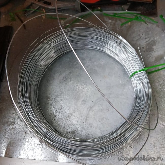 Для начала берём уже довольно исхудавший моток проволоки, в котором уже, к сожалению, не пять килограмм и отматываем от него моток поменьше.