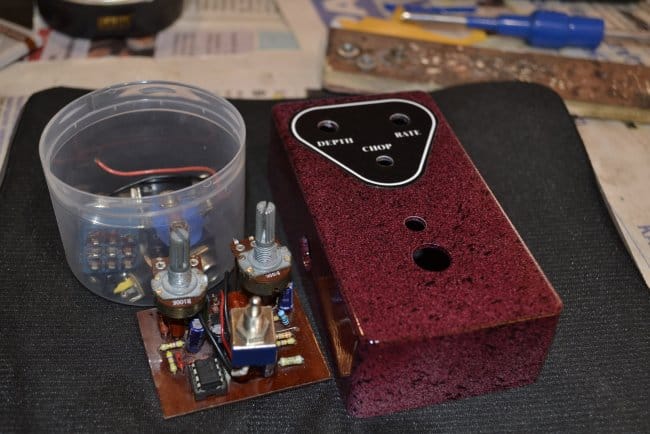 Многие гитаристы-самодельщики, в большинстве своём, обращают внимание только на такие типы эффектов обработки гитарного сигнала, как искажение перегрузкой и задержка звука (дилей). Что от части, грустно, ведь есть множество интересных эффектов обработки гитарного сигнала: вибрато, хорус, питч-шифтер, фленджер, и ещё много много интересного. Все эти эффекты позволяют украсить звук гитарного сигнала, сделав исполняемые произведения более уникальными, красивыми и выразительными. В этой статье хочу предложить Вам изготовление ещё одного эффекта, не указанного в перечисленном списке — тремоло, или амплитудное вибрато. Данный эффект очень простой, всё что он делает — меняет громкость с заданной частотой. Но даже такой простой эффект способен разнообразить партию. Чаще его конечно применяют вместе с синтезатором, вспомните композиции группы Pink Floyd. Но и гитаристы не обходят его стороной. Что-же, рассмотрим детальнее.