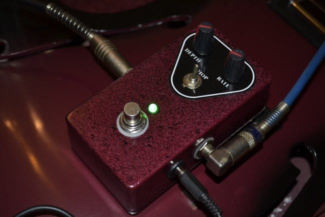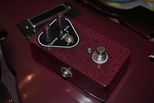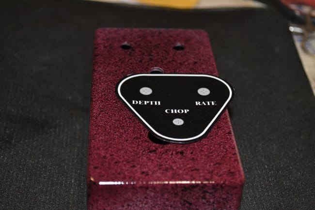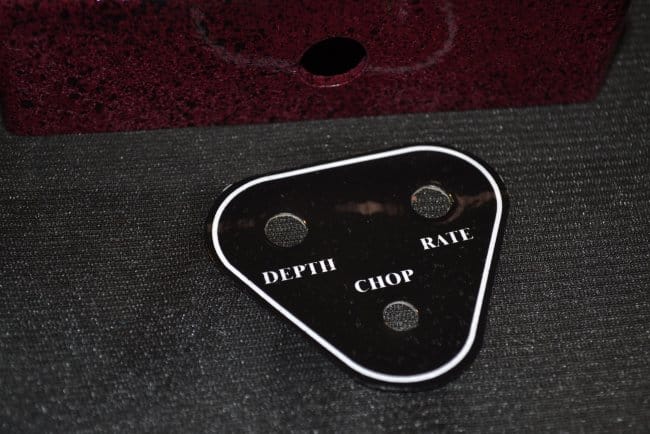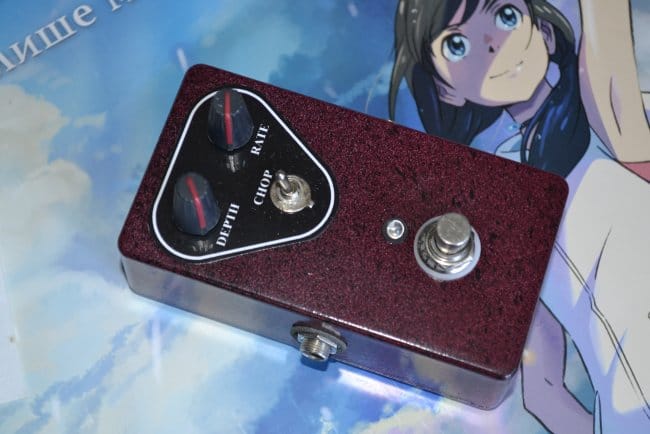 Так же об органах управления. Устройство имеет два регулятора и один двухпозиционный переключатель. Регулятор RATE изменяет частоту затуханий, DEPTH - их глубину, то есть от небольшого уменьшения громкости до полного затухания. Переключатель CHOP изменяет форму этих затуханий