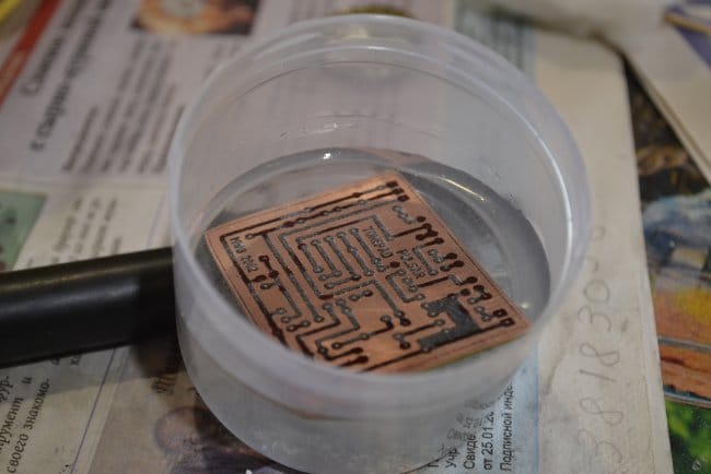 И хоть оно работало вполне исправно, некий внутренний ёж заставил меня изготовить нормальную плату, а не те отголоски гетинаксового прошлого. Благо, нашлась распечатка.