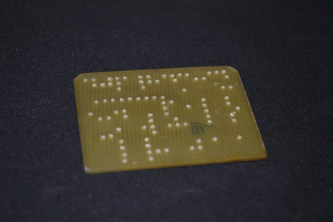 Печатная плата изготовлена обычным ЛУТ-ом, ничего нового. Всё это уже столько раз жевано-пережевано, что не вижу смысла повторяться. Термоперенос, травление в перекиси, лужение сплавом РОЗЕ, сверление.