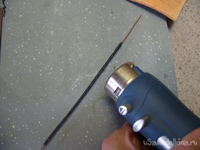 Ось вращения торсиона формирую аккуратно из термоусадки при помощи фена.Главное не перегреть, торсион должен вращаться в трубке свободно.
