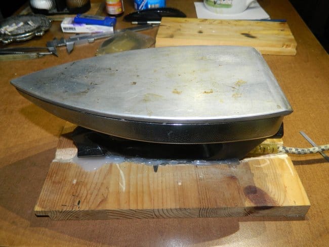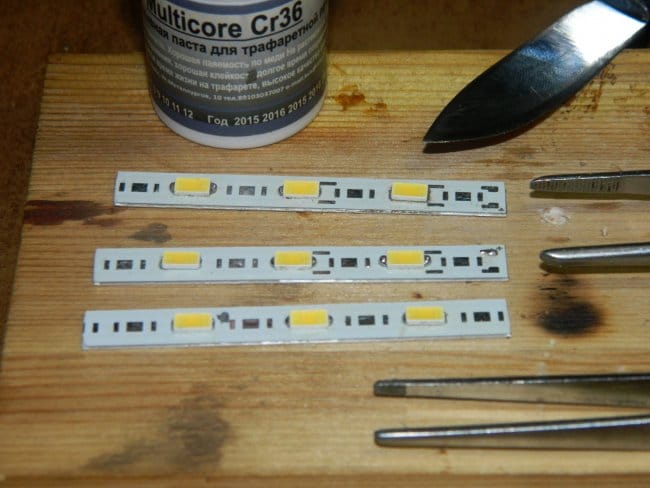 Пока клей готовился, я занялся распайкой светодиодов. Термостол у меня уже был готов (“бабушкин” утюг).