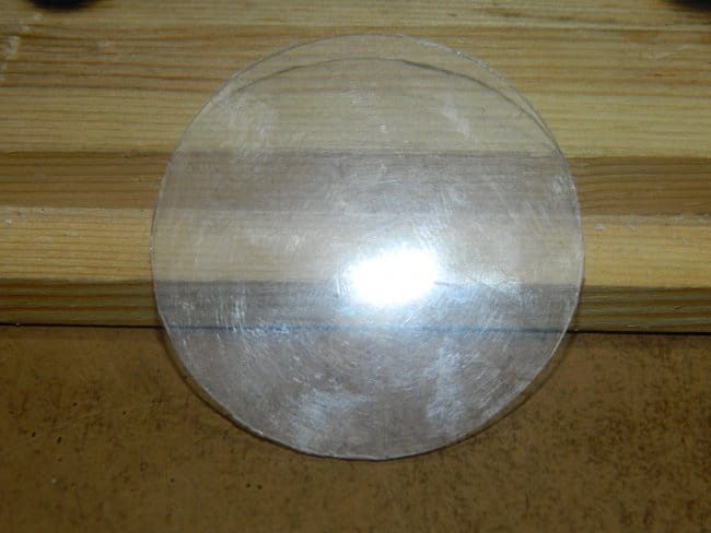 Дырки в крышке мне будут мешать, поэтому я вырезал кружок из оргстекла от коробки под компакт диски.