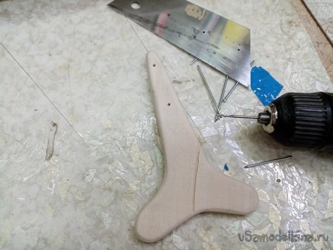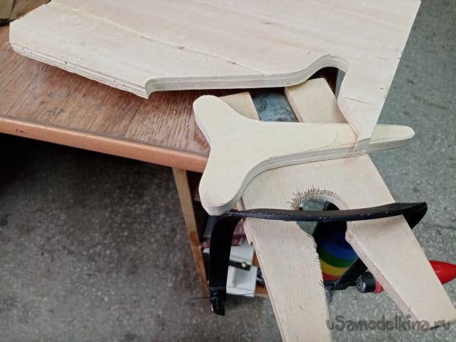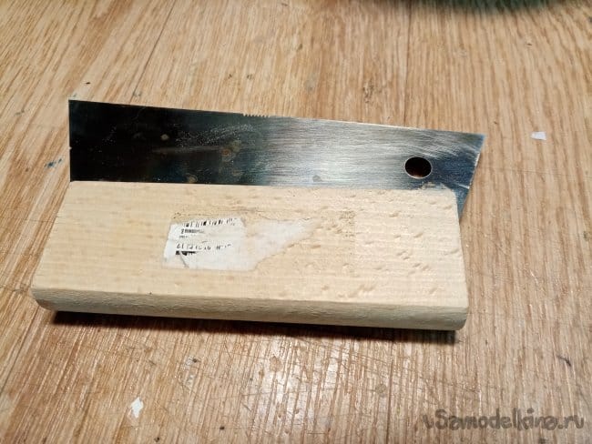 Ручку вырезал из 10 мм фанеры от фруктовых ящиков.