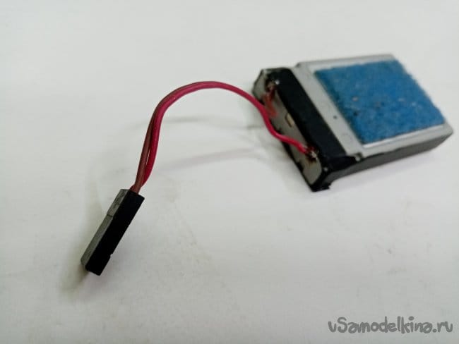 Подбираю подходящий по габаритам аккумулятор, Припаиваю разъем и можно подавать питание.
