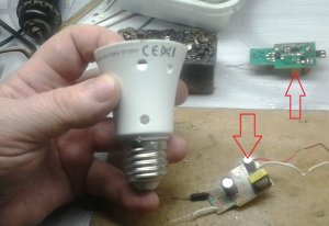 Вскрытие лампочки показало, что схема очень проста. Диодный мост, регулирующий ток элемент и светодиоды, подключенные последовательно.