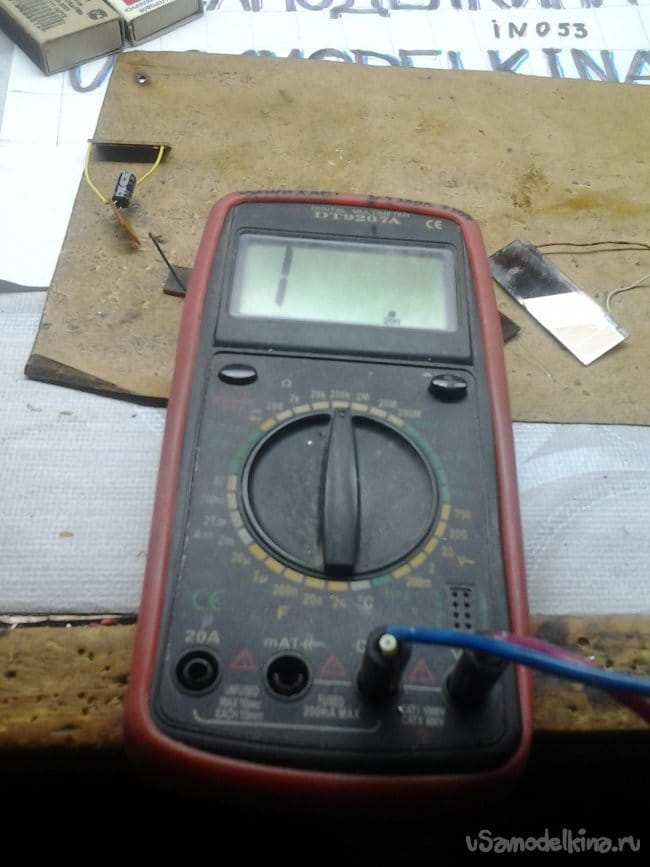 И вот сейчас посмотрим, будет ли разряжаться АК через СБ. Для этого просто измерим темновое сопротивление СБ. Переключаем мультик в режим омметра.