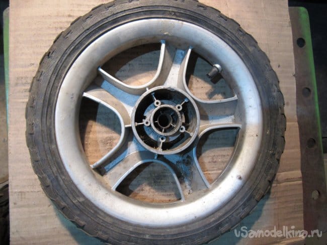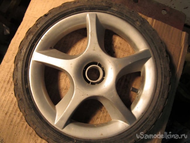 Колесо пришлось доработать, т.е вырубить острой отвёрткой ту часть, в которой вращалась ось.