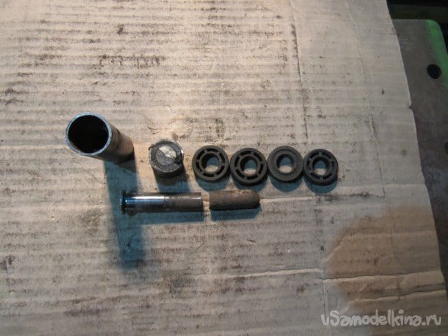 Отрезок оси и пластмассовые втулки использую для изготовления оси для транспортирования бензогенератора (но это уже в другой статье).