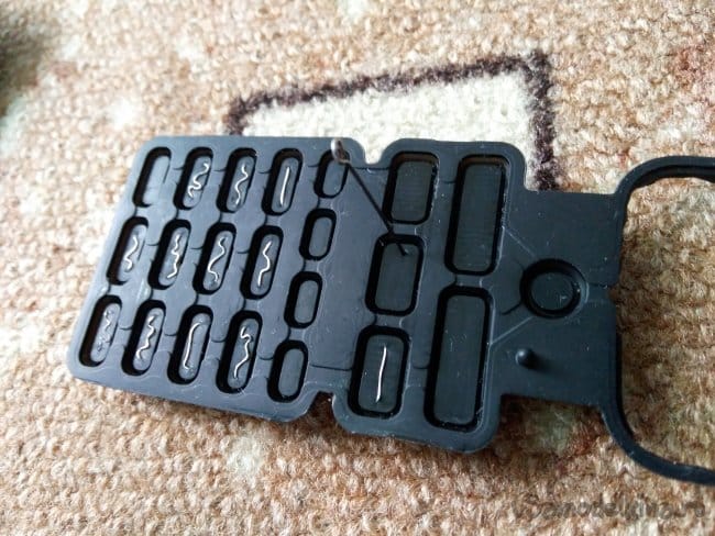 Каждую кнопку я прокалывал иголкой в двух местах и вставлял в места проколов, лужёный проводник. Пинцетом было очень удобно. Только не очень глубоко, где то 3 мм., а то с обратной стороны можно будет палец уколоть. В общем всё нормально получилось, хотя наверняка некоторые товарищи скажут, что проще купить новый и т. д. Но мы то, самодельщики знаем, что купить можно не всё.