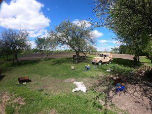 Решил собрать небольшой ветряк, посмотреть, пощупать, сколько он выдает крутящего момента. В будущем планируется сделать подобный более крупный ветряк с небольшим генератором, а потом может и с большим. А пока поставил на него трещотку из бутылки, для отпугивания диких животных и особенно ястребов, которые последнее время залетают за курами прямо во двор. Правда, вряд ли эта штука их остановит, ну зато хорошо смотрится как для меня, мне вообще нравятся разные такие вертушки.