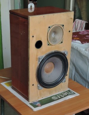 Ну и всё в сборе. Как видите — без ручек. Ручки на самом деле есть, советские же ручки для советских же резисторов. Однако на конечном этапе сборки выяснилось, что налазят они очень туго, хоть молотком набивай, хотя под этот диаметр. Так что или растачивать, или подбирать другие, этим займусь позже, устройство работает, разумеется, и без них.