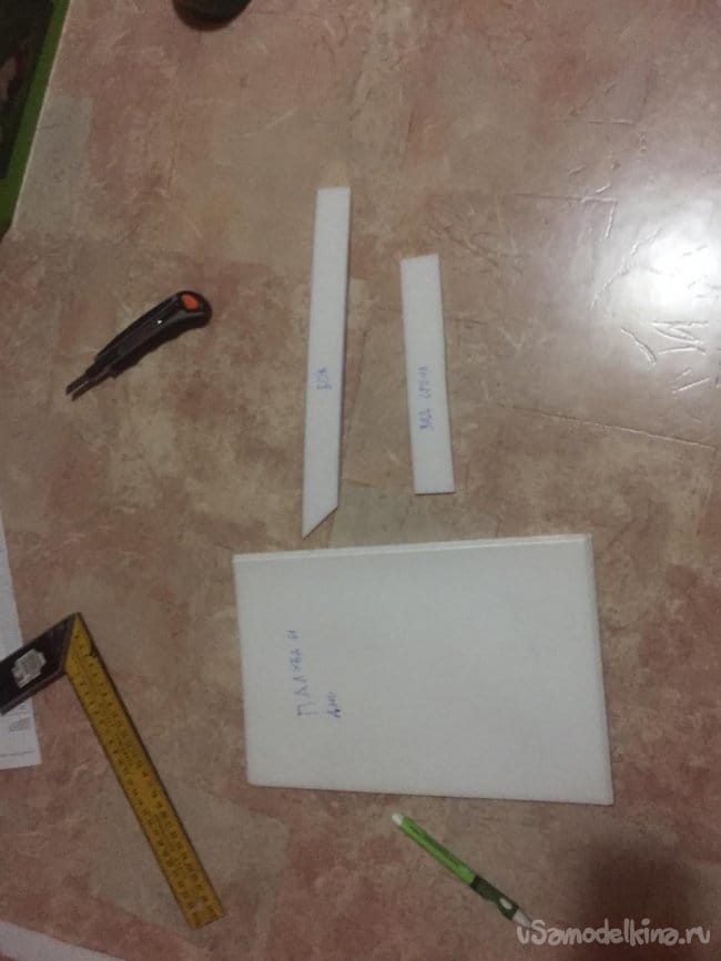 Когда я продумывал модель я решил что палуба, дно и бока будут из двух слоёв потолочной плитки.