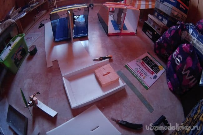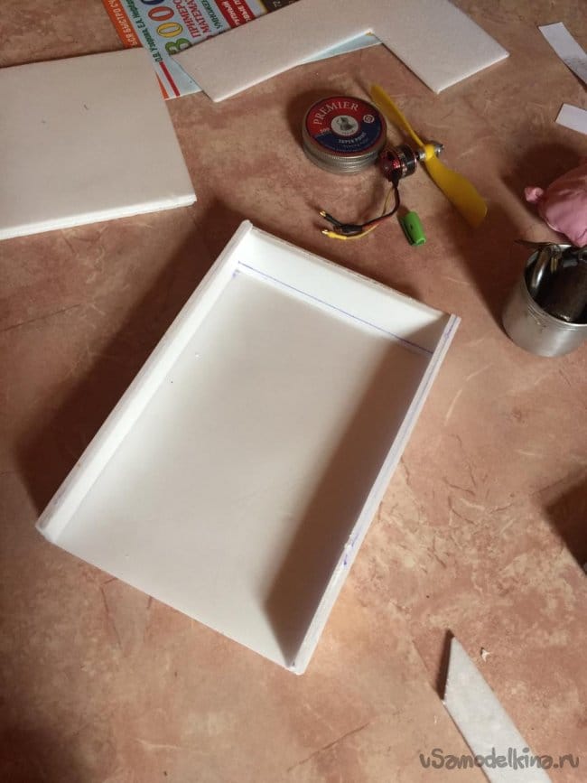 Так же в карме где будет стаять мотор я вклеил пеноплекс, чтобы стойка моторамы не болталась.