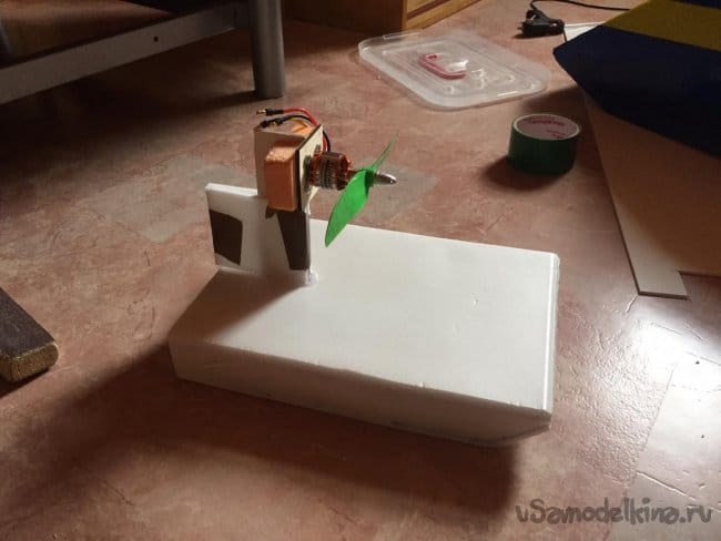 Пока палуба клеилась я начал делать мотораму. Стойку моторамы я решил сделать из ПВХ пластика. Приклеил два кусочка пеноплекса и к нему фанеру.