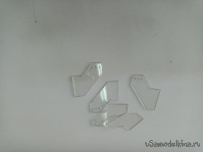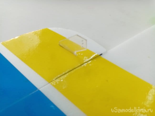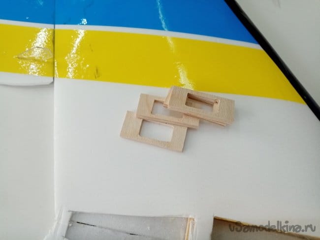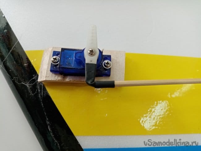 Сервоприводы устанавливаю на фанерные рамки, качалки на рулевые поверхности из прозрачного пластика.