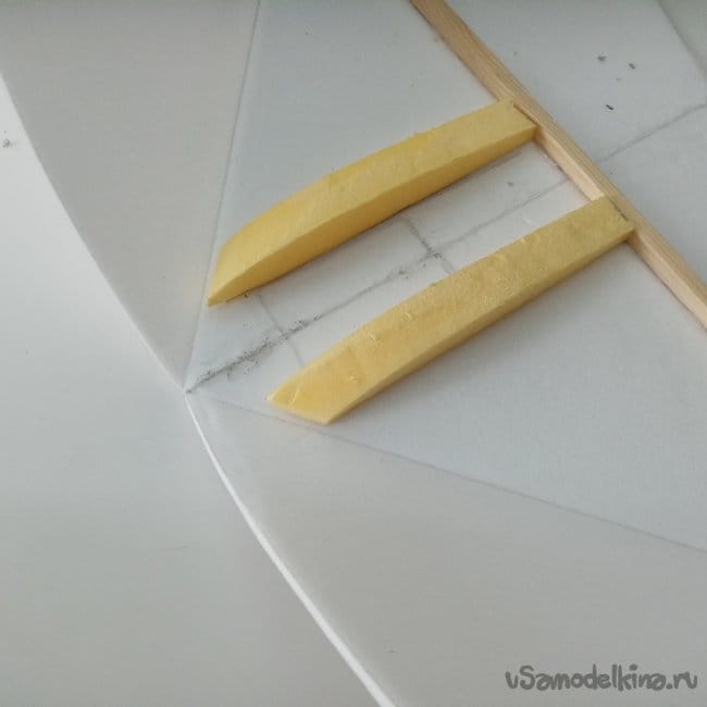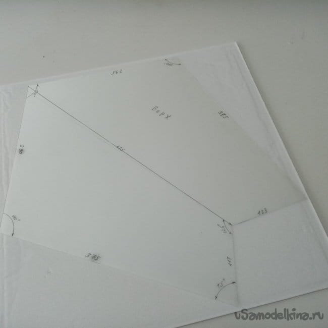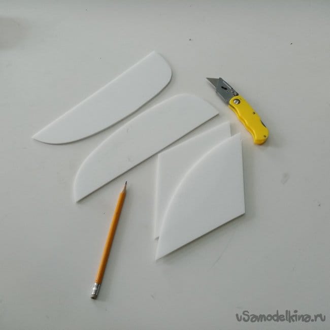 Шаблон крыла у меня был, из двух листов потолочки получаются два крыла, плюс кили. И еще четверть листика на флапероны.