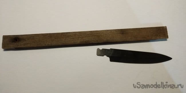 Потом я приложил плашку к клинку и нарисовал примерно удобную рукоять. Примерно такая и была на ноже до поломки.