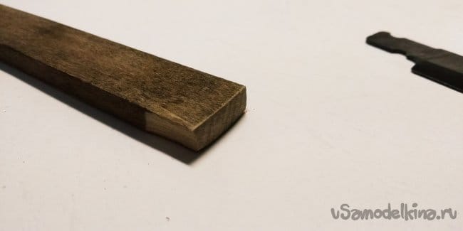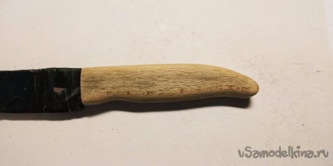 И опять зашкуриваем нашу рукояточку, чтобы она была гладкая и приятная. Плоскости тоже нужно зашлифовать, чтобы убрать мягкий серый слой.