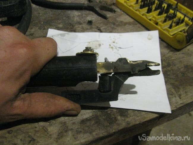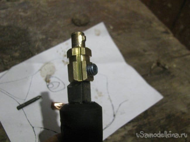 Зажим электрода латунный, поломал корпус пока разбирал, ну да ладно, пару лет поживет.