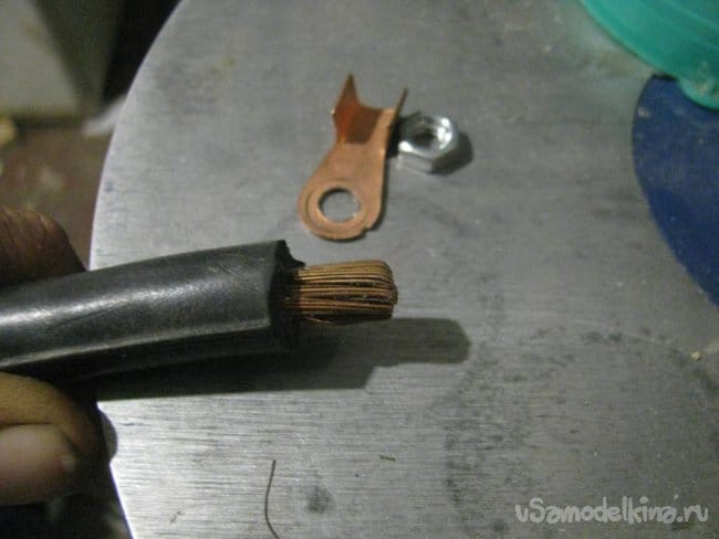Всегда умиляли спецы, берущие толстый провод, и подключающие его к клещам через "соплю" с площадью сечения в 10 раз меньшей, чем кабель )))))))